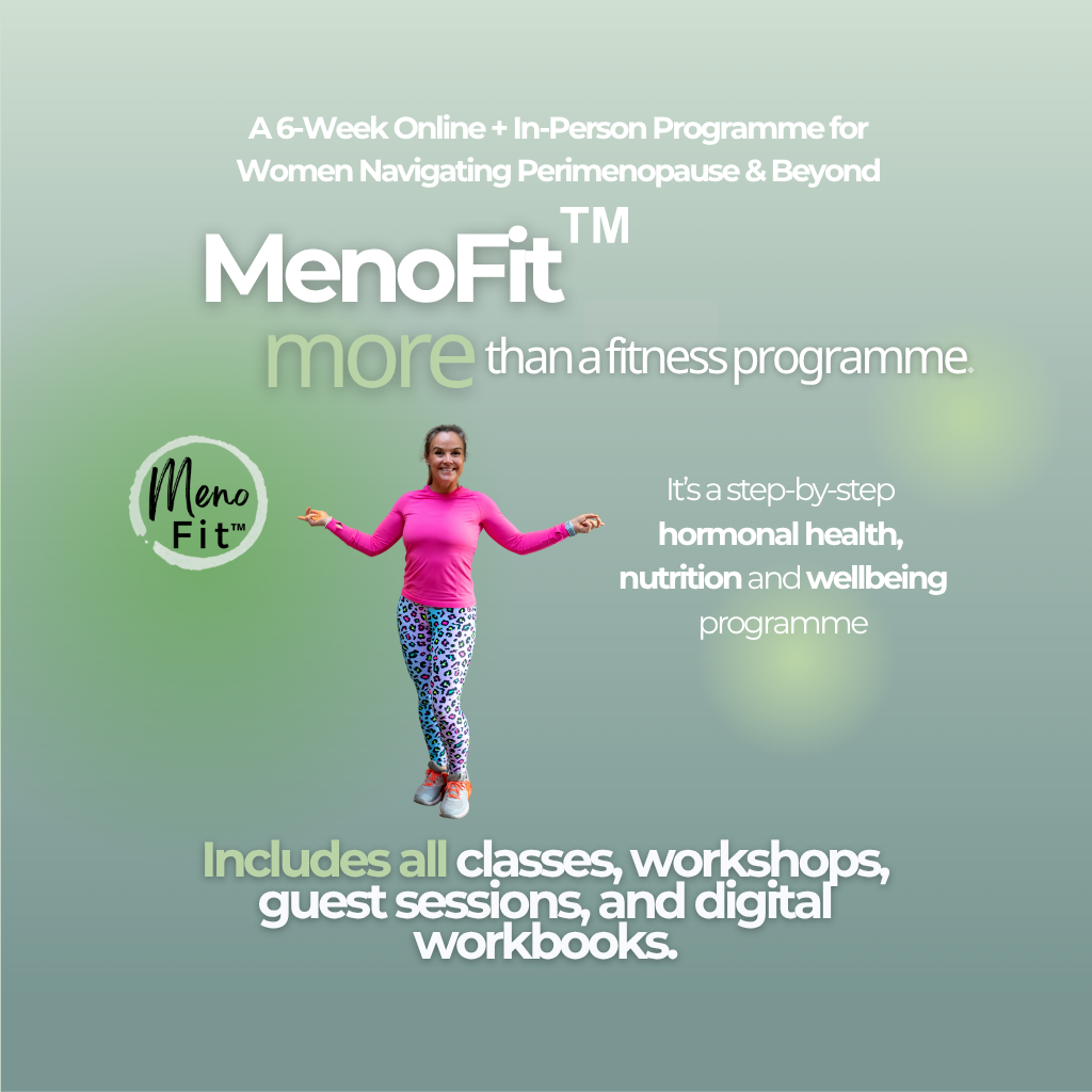 Menofit™ is a step-by-step health, fitness, and wellbeing programme specifically designed for perimenopausal and postmenopausal women. This is NOT a quick fix — it’s a smart, empowering approach to your hormones, health, and habits.